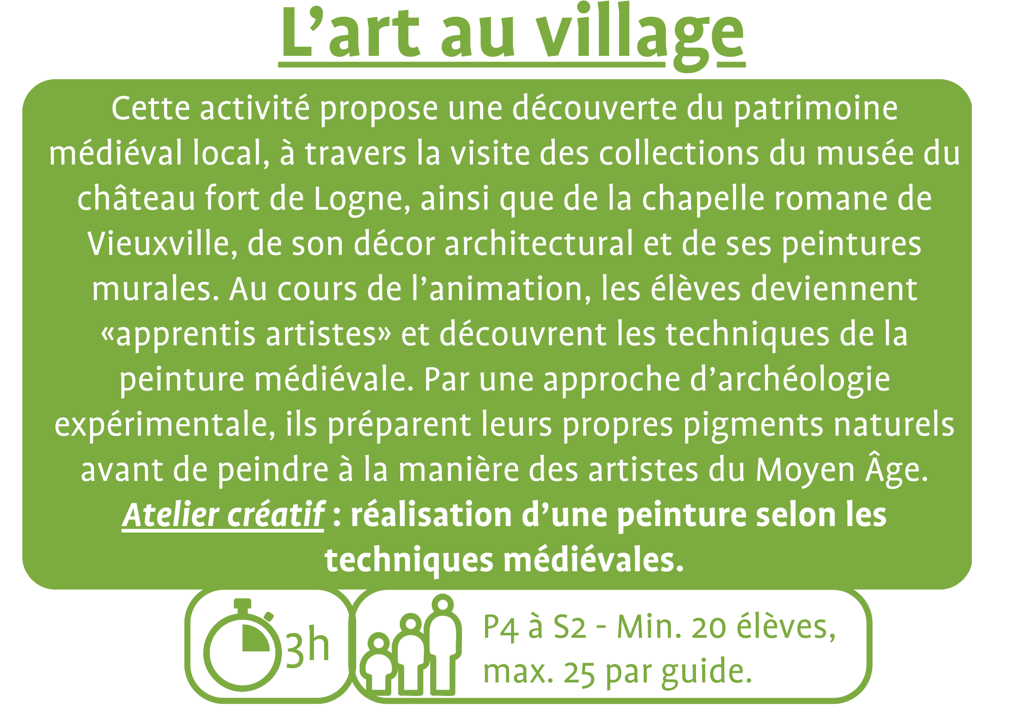 Les Musées de Logne proposent deux formules pensées pour accompagner au mieux vos projets et offrir à vos élèves une expérience enrichissante.