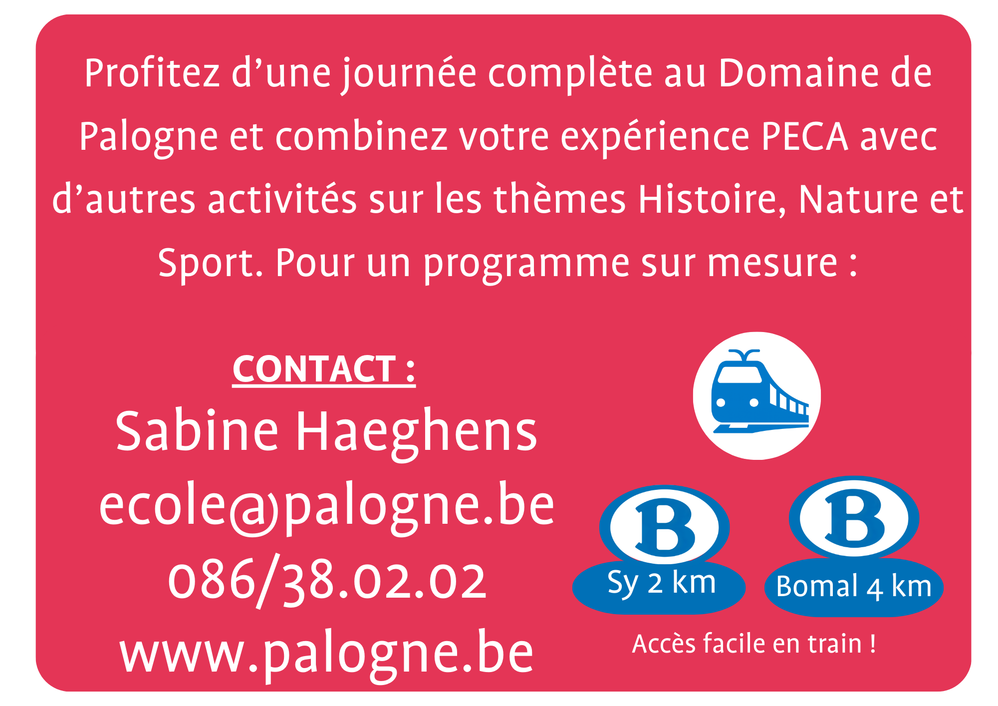 Contact & réservation • Sabine • ecole@palogne.be • 086 / 38 02 02